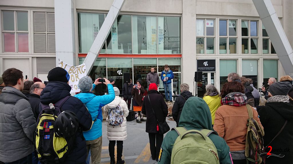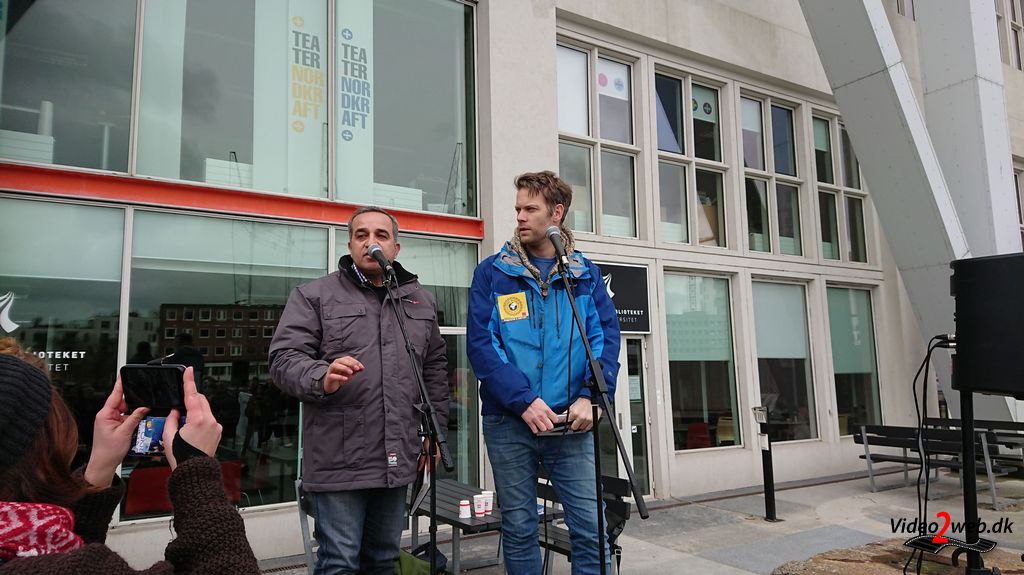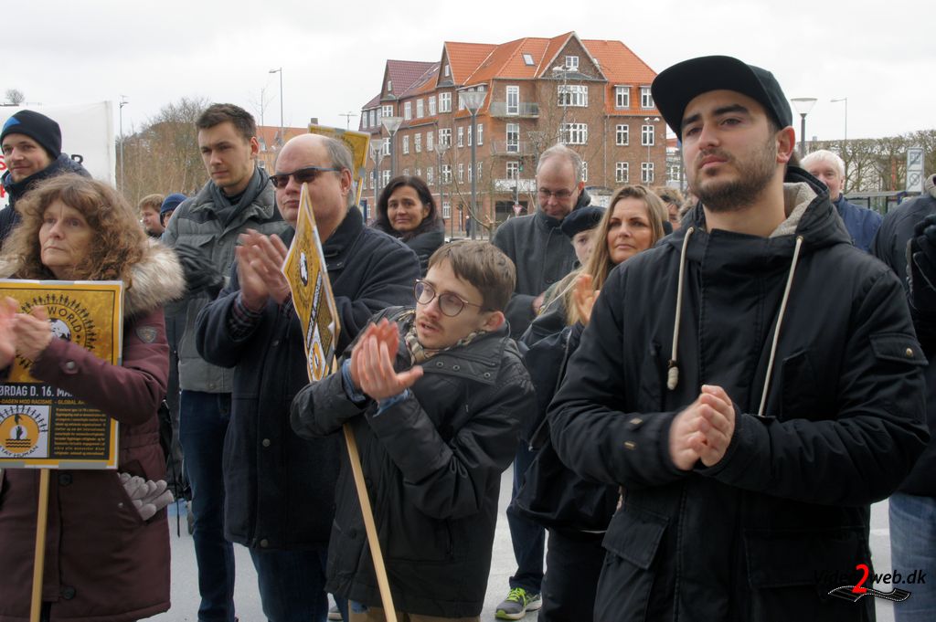 På Teglgårds Plads holdt Rasha Khalife fra Enhedslisten og Hans Hyttel fra Amnesty International i Aalborg taler, mens peruvianske Auria Paz Aguilar spillede og sang og Claus Nivaa & Nader Alkasem læste højt af deres tosprogede digte.