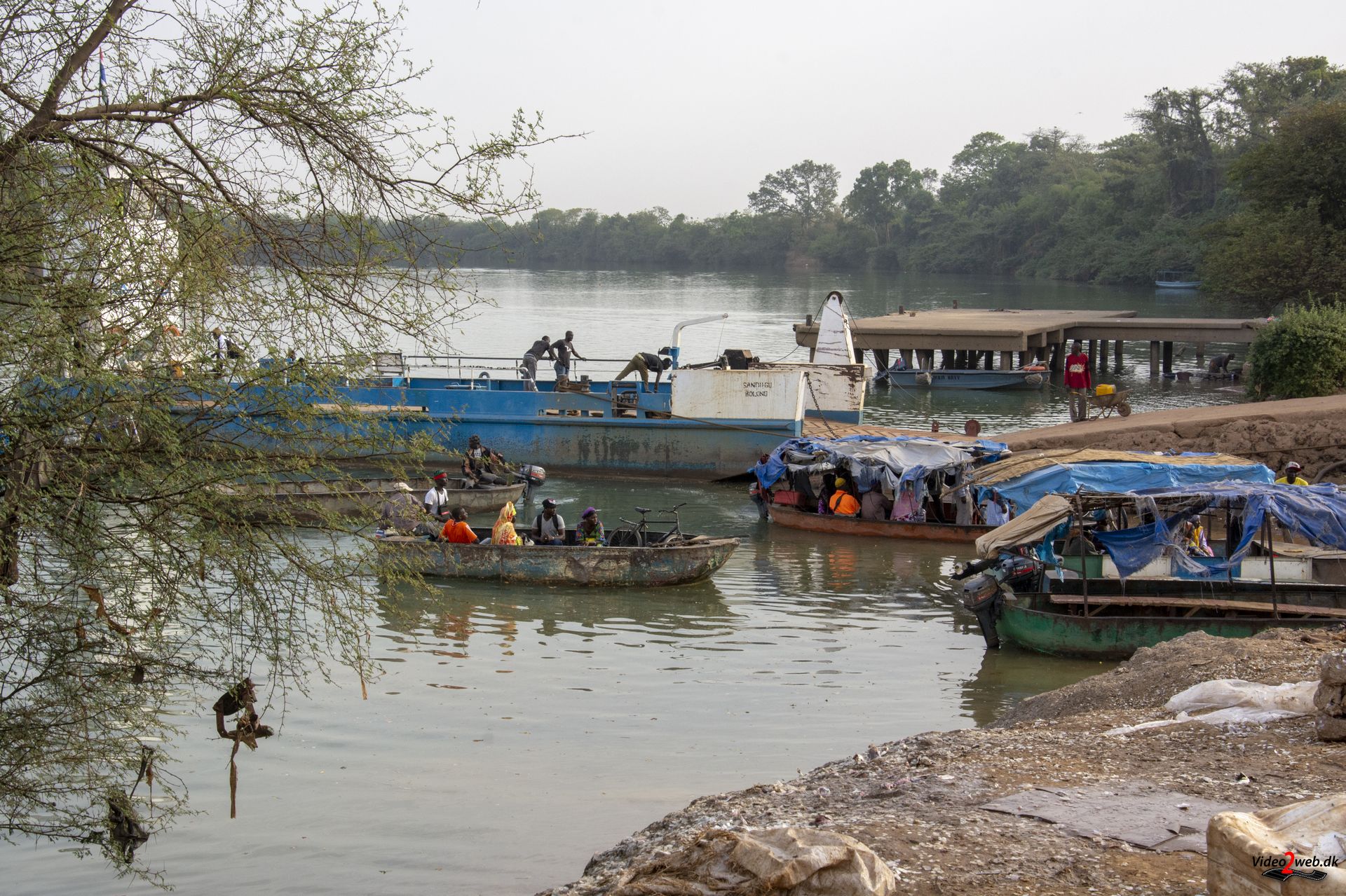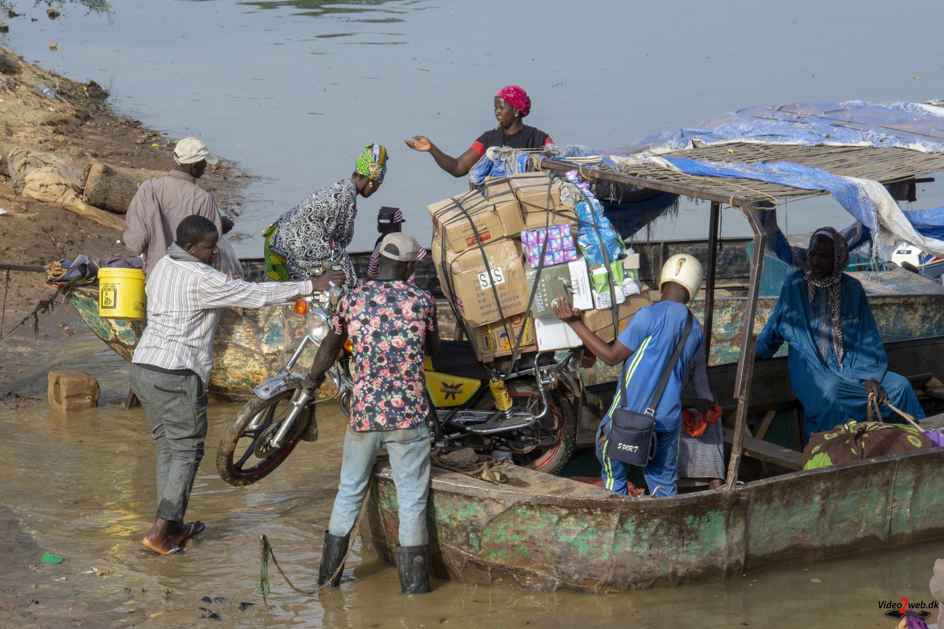 - Selv en motorcykel kan sejles over Gambiafloden på lille båd