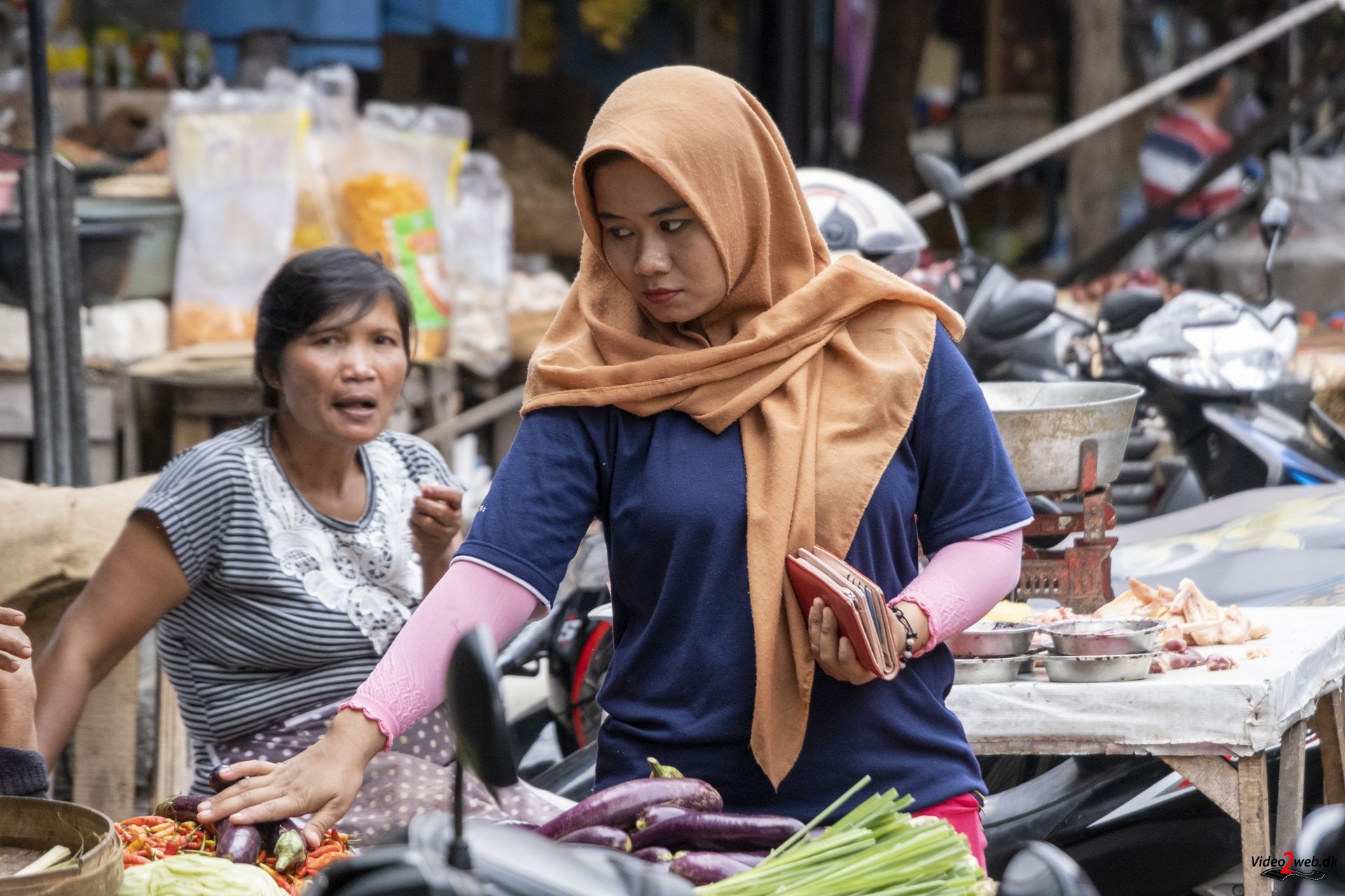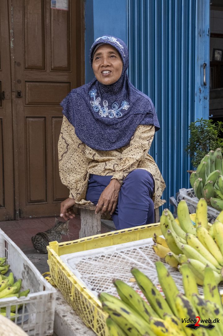 - Muslimsk kvinde på indkøb på marked i Singaraja