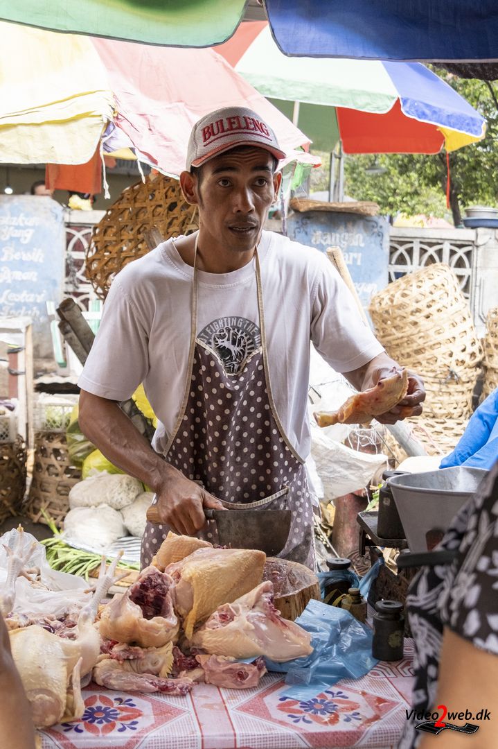 - Fluerne viftes væk fra kyllingerne på markedet i Singaraja