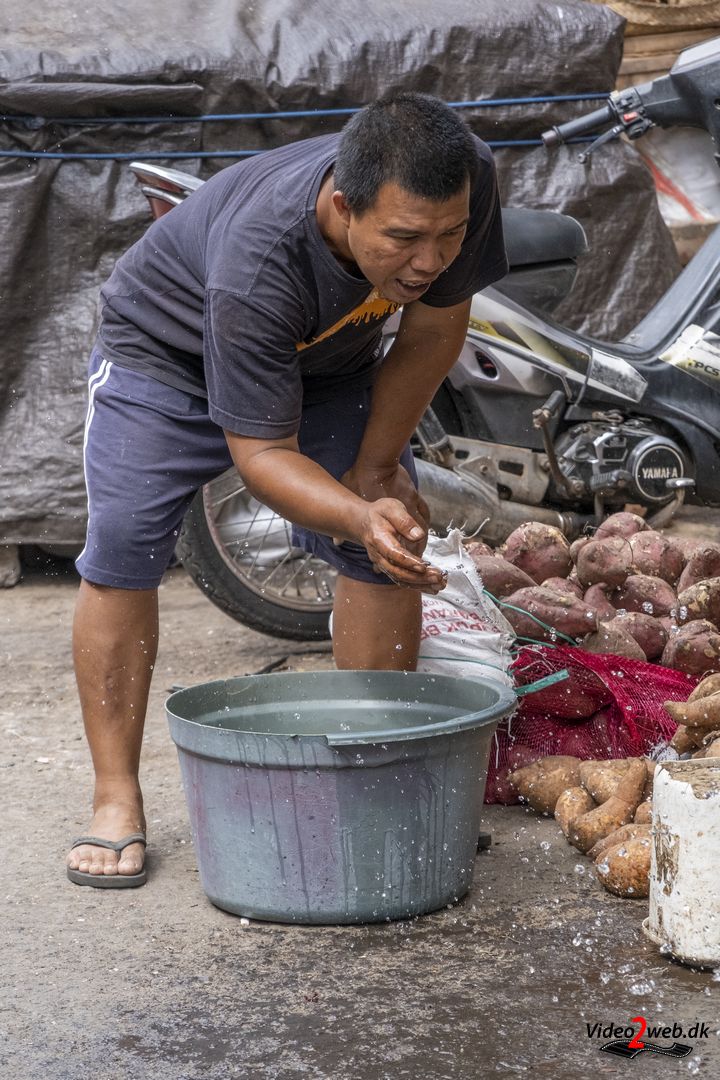 Boderne bugner af frugt, ris, grøntsager, krydderier, religiøse artefakter og alle de mange andre ting, der kendetegner et asiatisk marked. Her er larm, lugt, liv og lokale. Turisterne ligger ved stranden – kun et par småtossede danskere har vovet sig ind i heksekedlen:-)