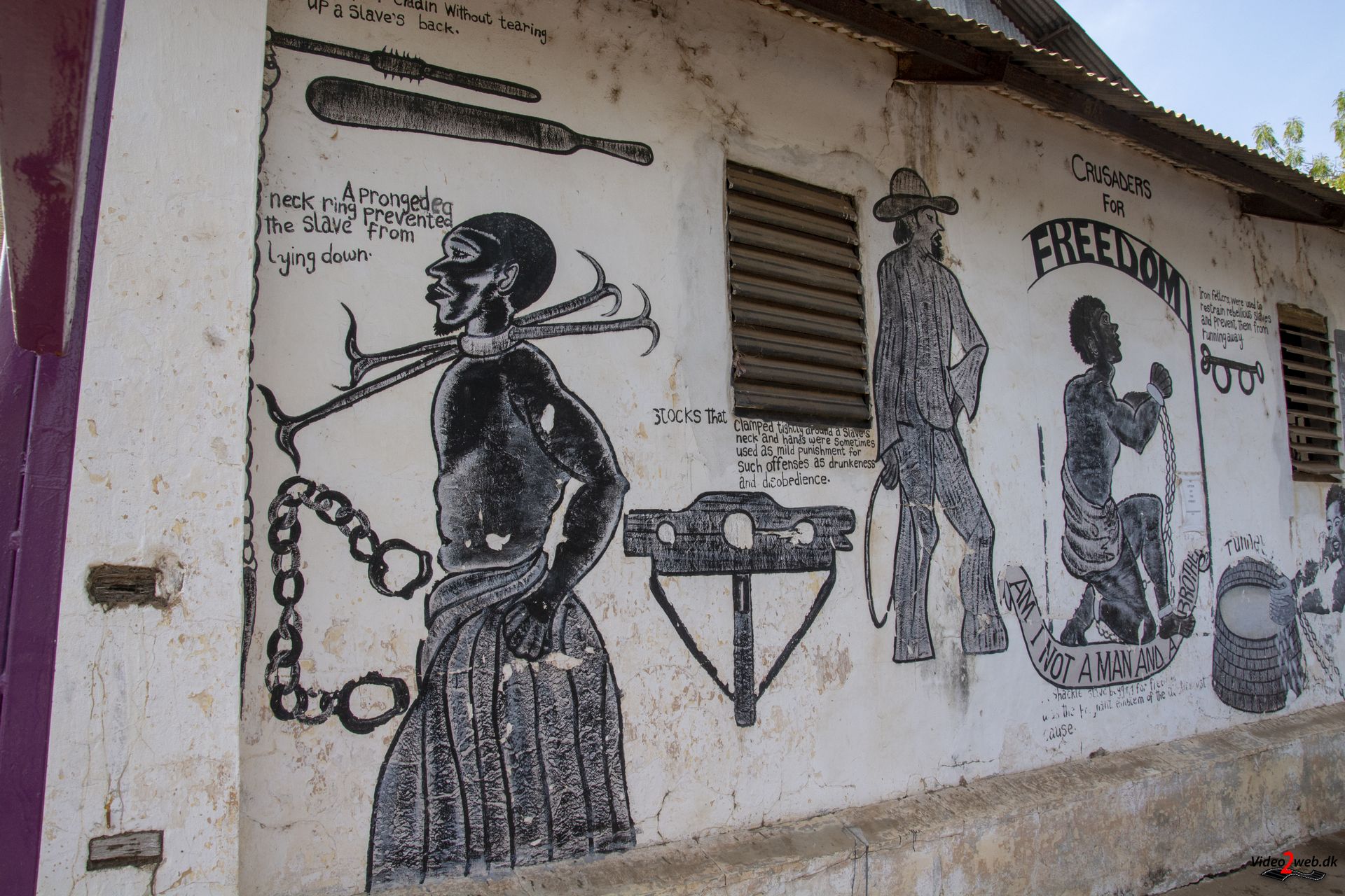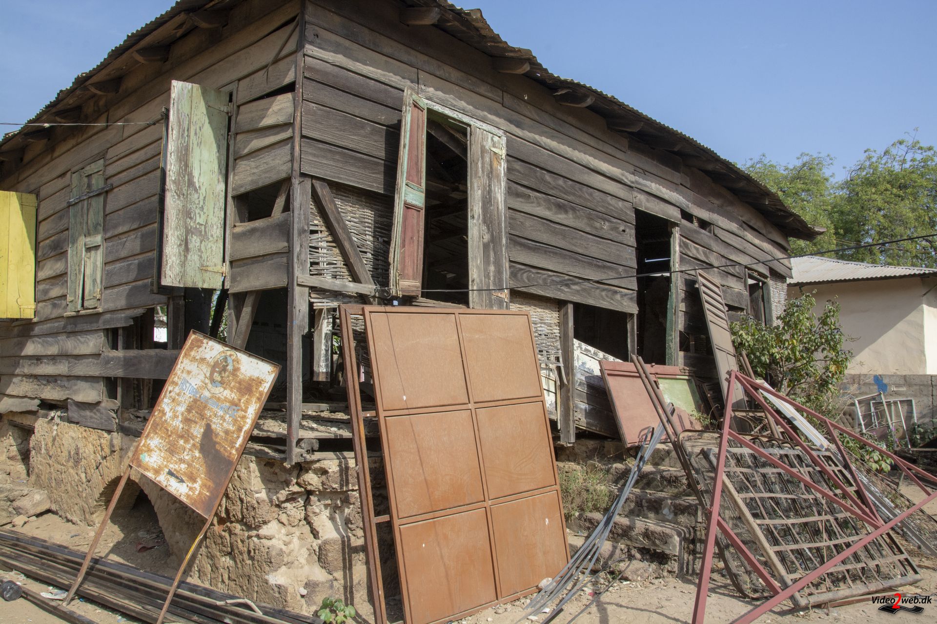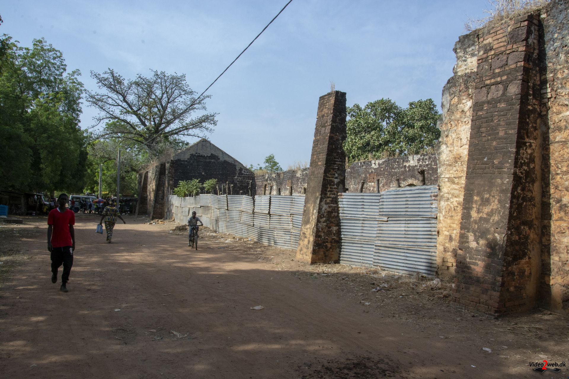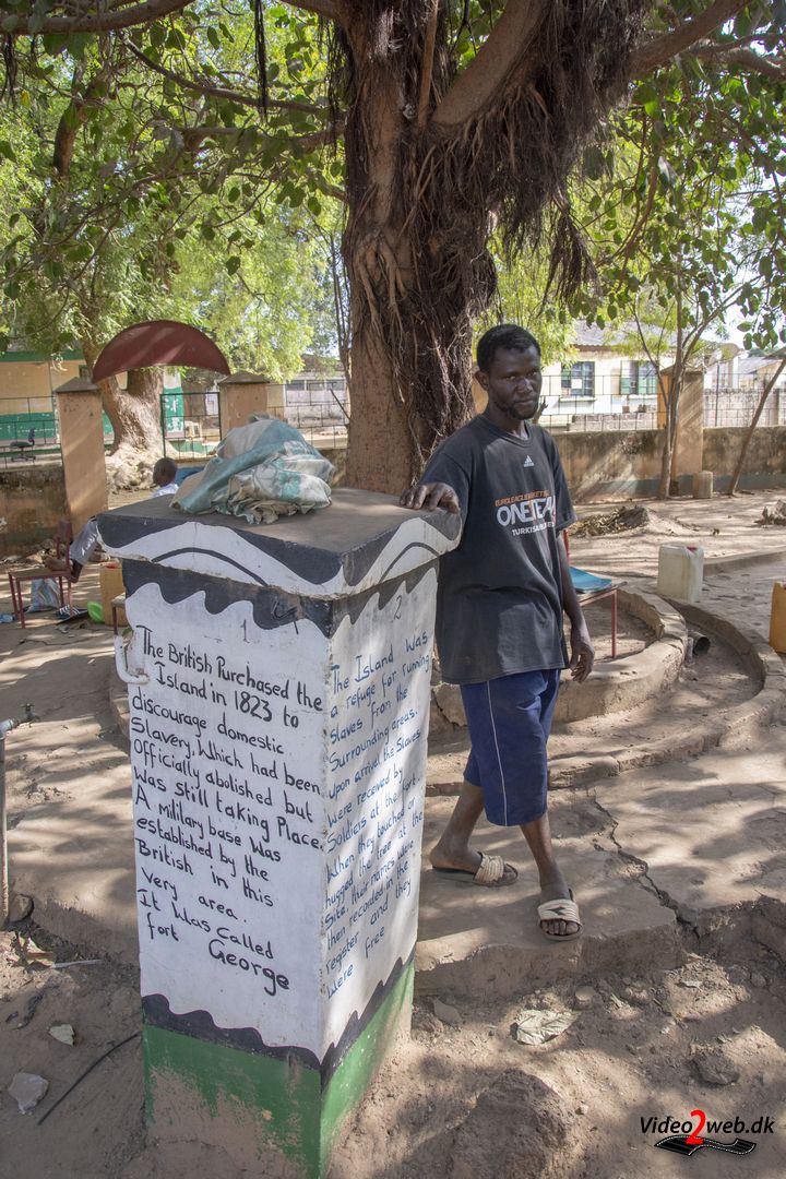 Et andet centralt sted i slavehandlen var Janjanbureh (tidligere Georgetown) længere inde af Gambiafloden. Billederne her er derfra. Der står enkelte bygninger tilbage, og der er lavet et lille mindesmærke – et træ. Hvis slaverne slap fri og nåede frem til træet, blev de frigivet.