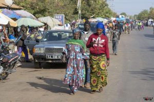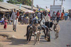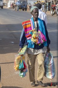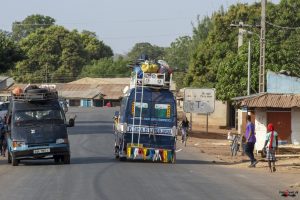 Kvinderne bærer kurve med bananer på hovedet og forsøger at tjene lidt til dagen og vejen ved at sælge til de mange forbipasserende i de overfyldte og overlæssede minibusser. Boderne på begge sider af vejen faldbyder sandwich af hvidt brød med æg, kød eller bønner. Sælgere kæmper for at slippe af med alt fra løg til farvestrålende håndklæder.