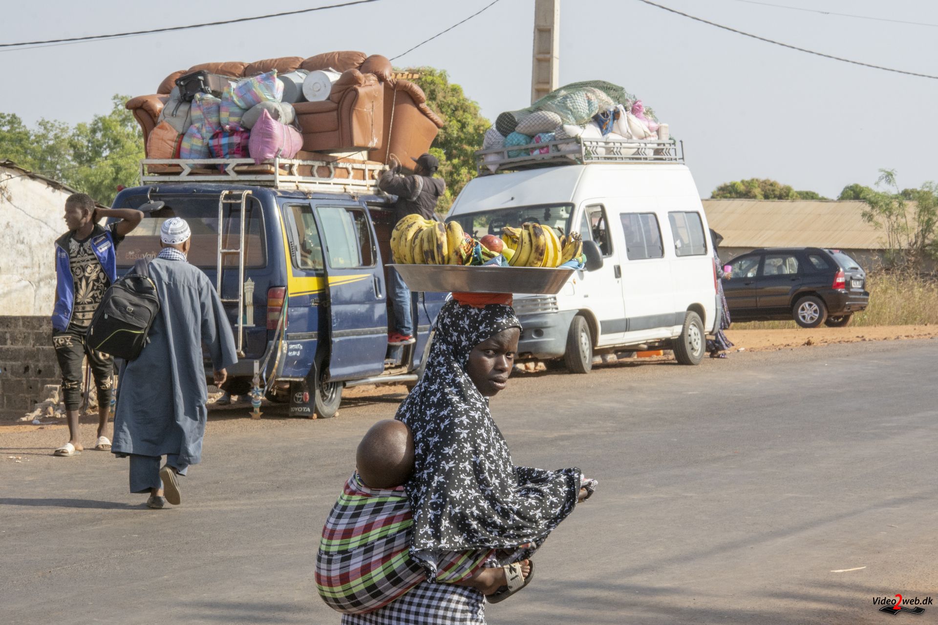 Kvinderne bærer kurve med bananer på hovedet og forsøger at tjene lidt til dagen og vejen ved at sælge til de mange forbipasserende i de overfyldte og overlæssede minibusser. Boderne på begge sider af vejen faldbyder sandwich af hvidt brød med æg, kød eller bønner. Sælgere kæmper for at slippe af med alt fra løg til farvestrålende håndklæder.